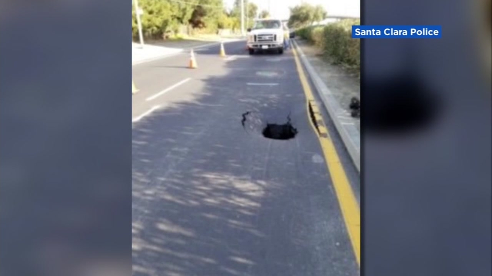 SANTA CLARA, Calif. (KGO) -- It can be tough trying to simply navigate Bay Area roads and now drivers in Santa Clara will need to keep their eyes peeled for a sinkhole.