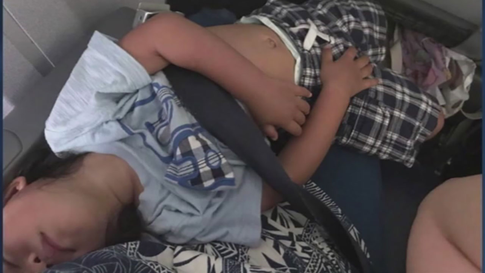 She took pictures of him in all different, contorted sleeping positions throughout the flight and eventually had to have him just stand between her knees.