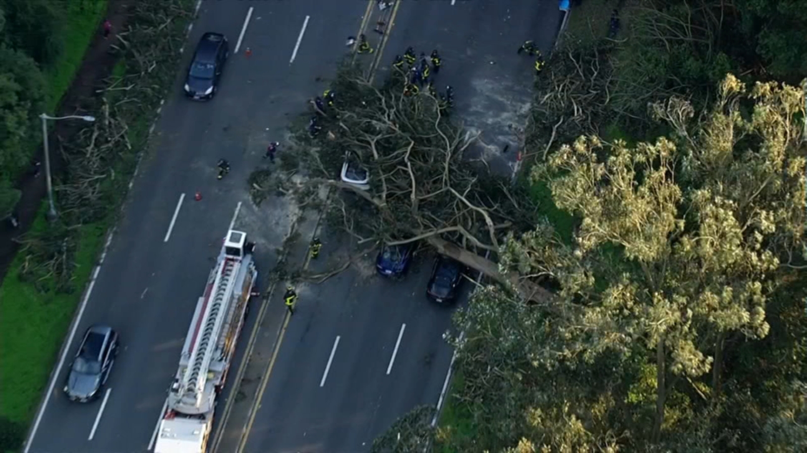 The San Francisco Fire Department initially said the large tree damaged four cars, but have updated its number to five.