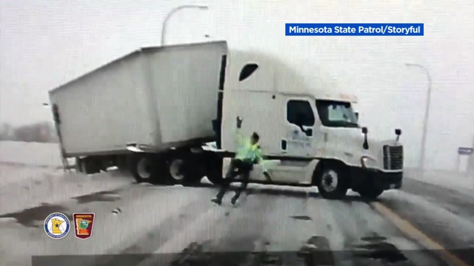 VIDEO: Powerful Minnesota winds drag state trooper several feet before knocking him down