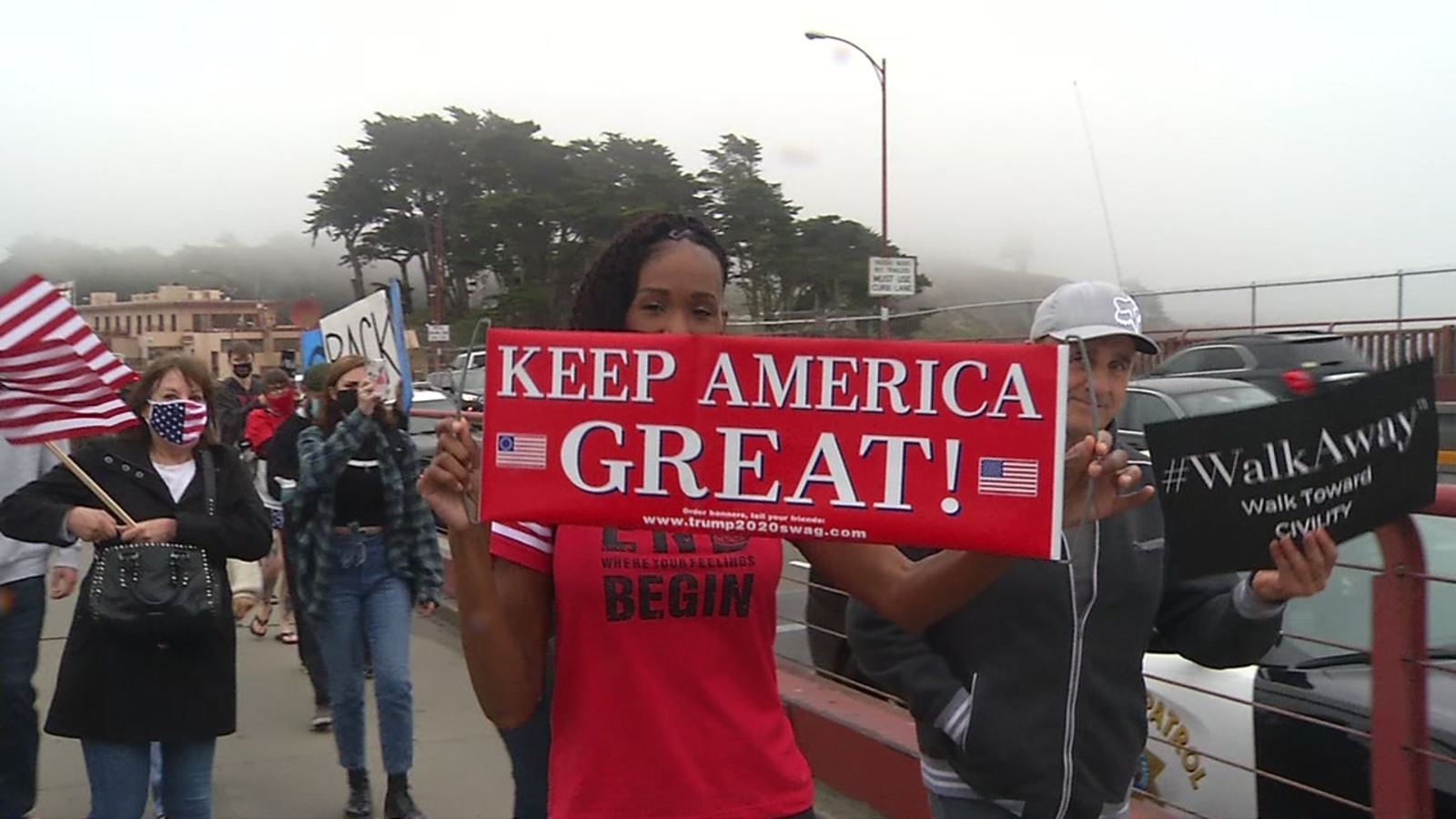 SAN FRANCISCO (KGO) -- Conservatives and liberals faced off today during a protest at the Golden Gate Bridge.
