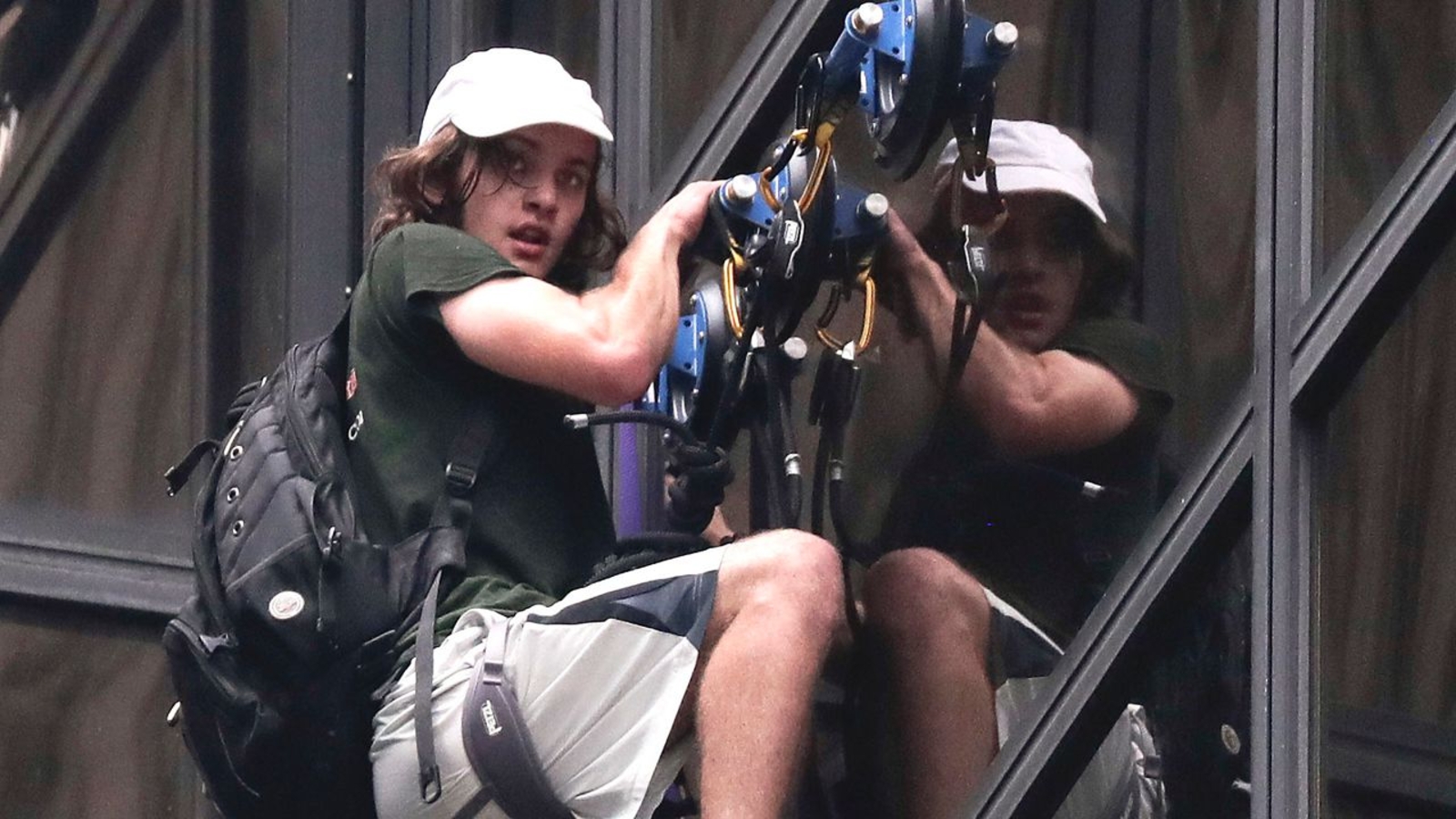 Rogata played a slow-motion cat-and-mouse game with his would-be rescuers as he climbed. Officers smashed windows and broke through ventilation ducts to block his progress. Police also lowered themselves toward the man using a window washer's platform.