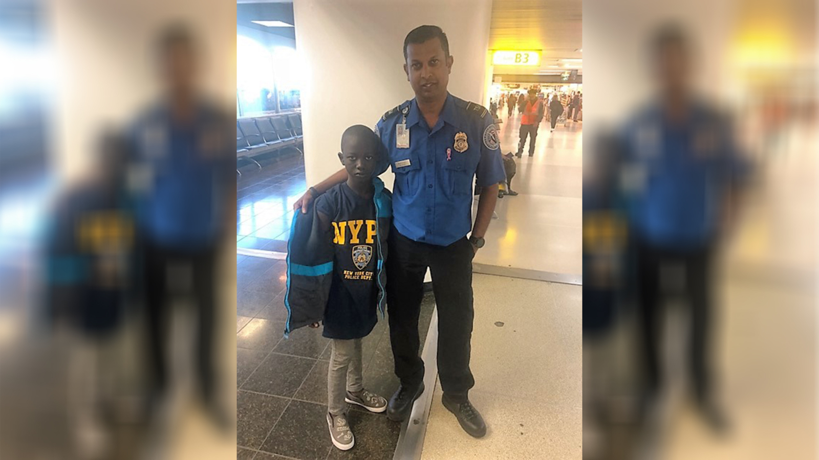 Two officers then stepped away from the checkpoint to buy the boy an NYPD t-shirt from an airport store.