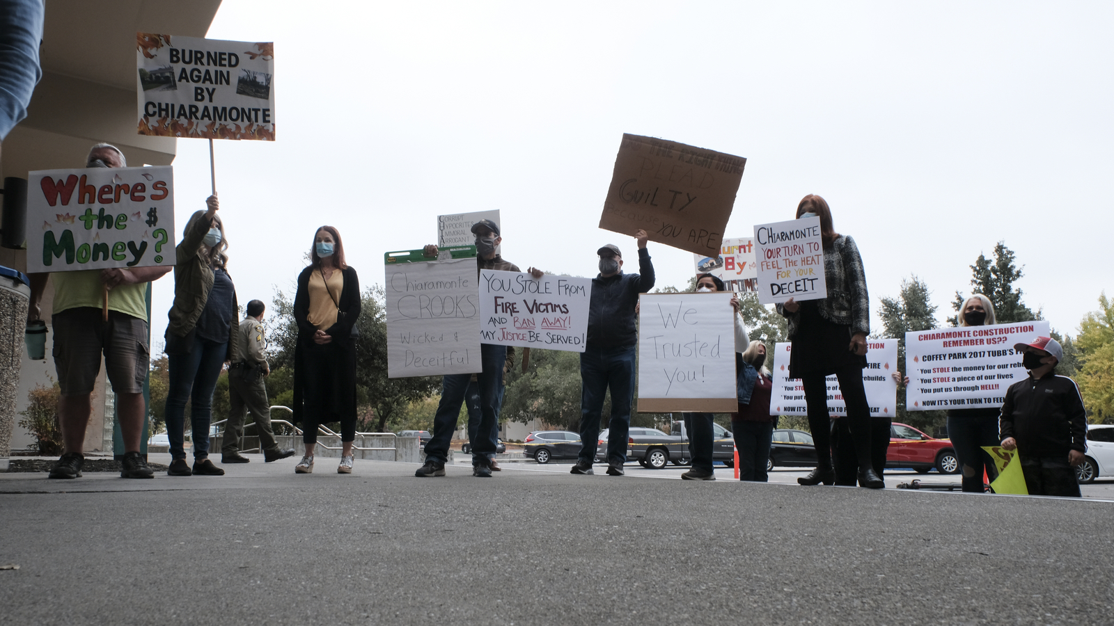 She and others in the crowd lost homes in the fire and money, they say, to Sal and Pam Chiaramonte.