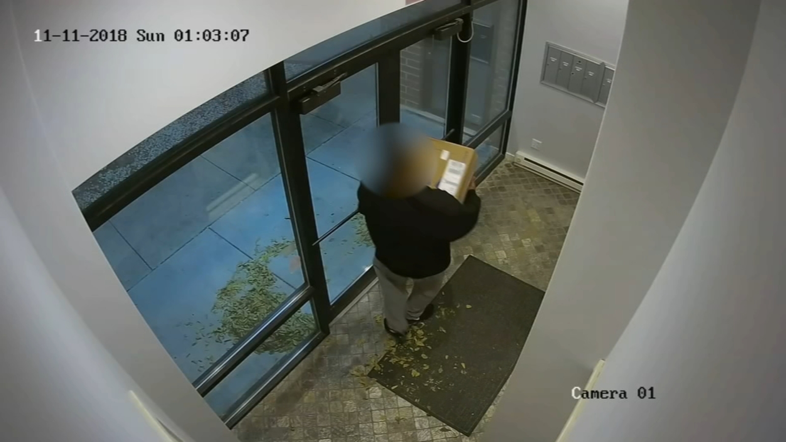 Later on the footage, when the mystery passenger leaves, he isn't empty handed; he has two packages in his hands. The boxes go into the backseat of the Uber Eats car, where there appears to be more boxes.