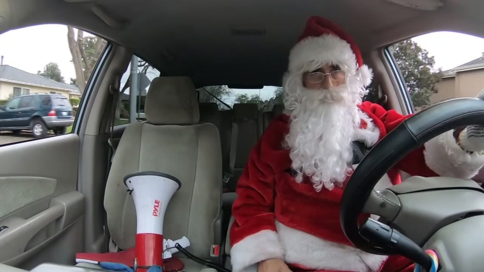 During one ride, his passengers picked up his megaphone, rolled down their windows and sang Christmas songs to other cars.