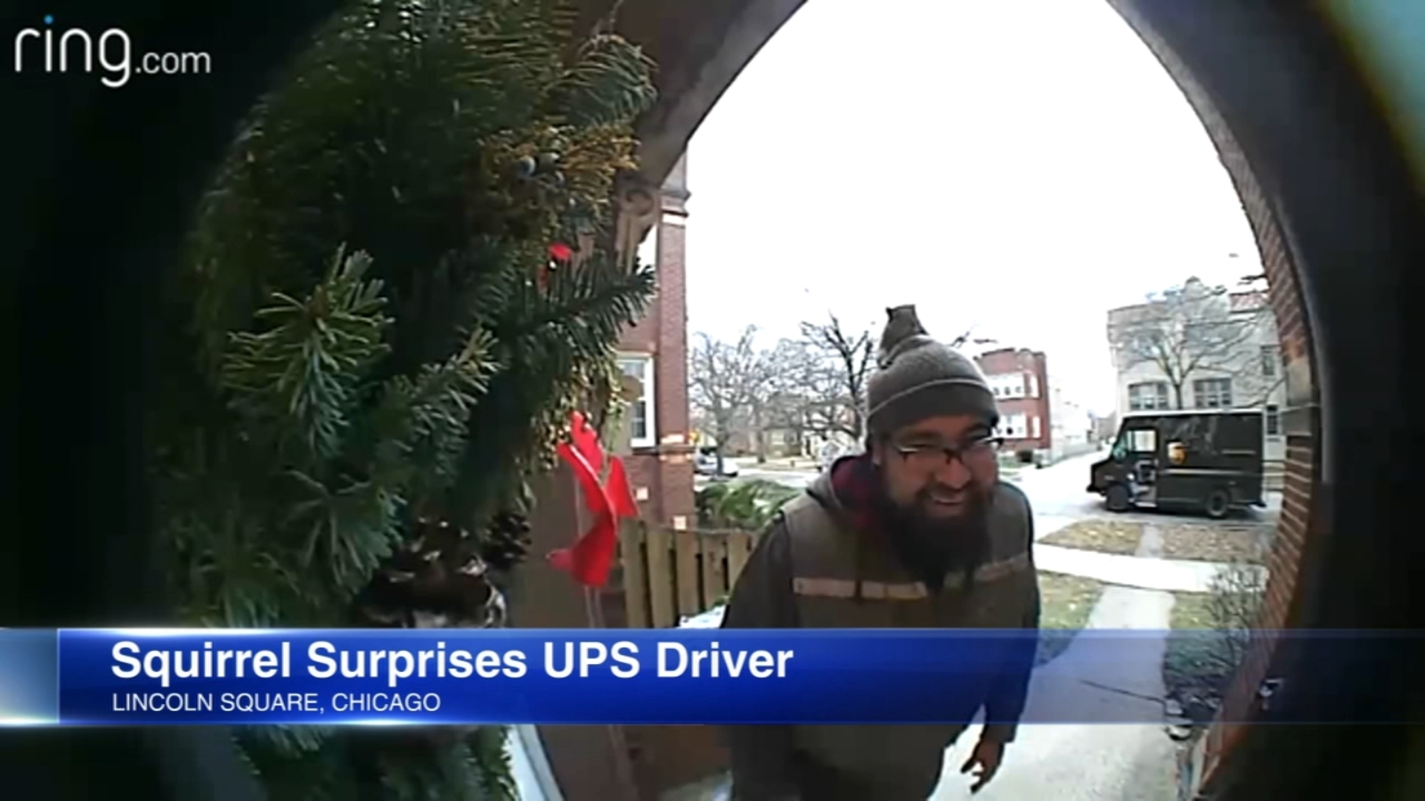 CHICAGO -- A UPS delivery driver got a surprise from a furry friend during a delivery - and the whole thing was caught on a doorbell camera.