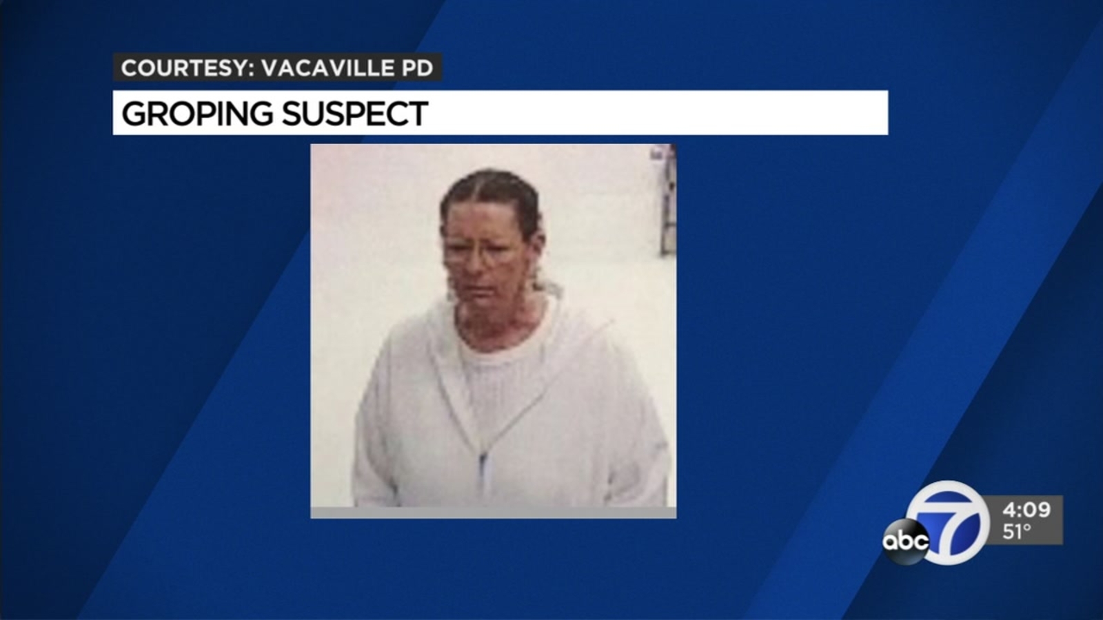 VACAVILLE, Calif. (KGO) -- Vacaville police are asking for the public's help to identify a woman accused of groping several people at a Wal-Mart store.