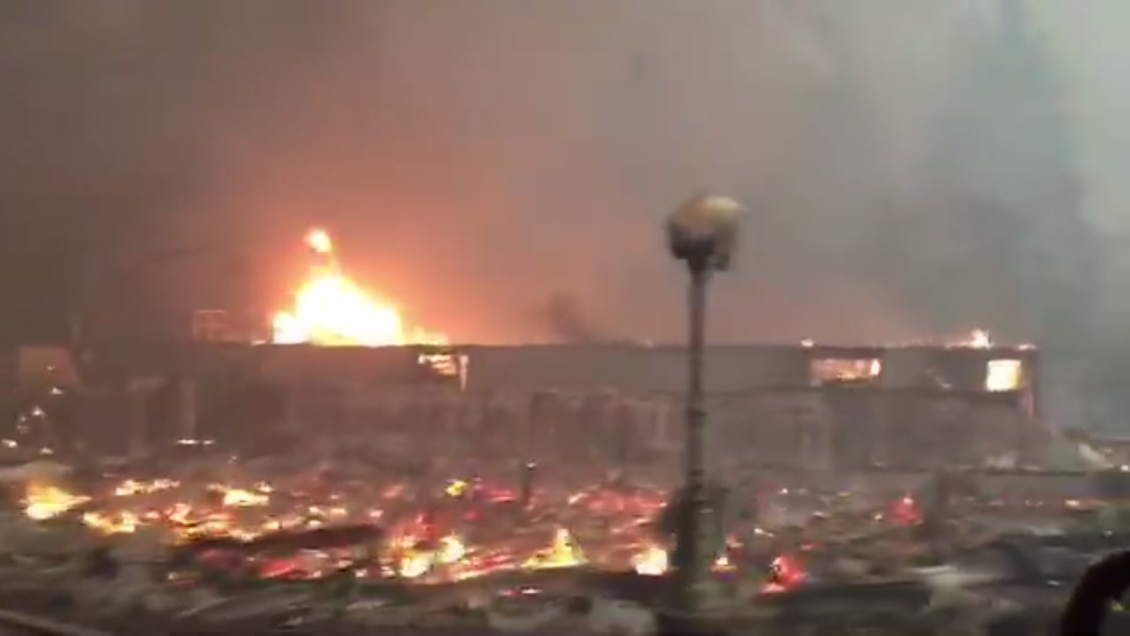 Watch as former firefighter Brian Andrews drives down Clark Road, where you can see most of the buildings are burning to the ground -- including the McDonalds.