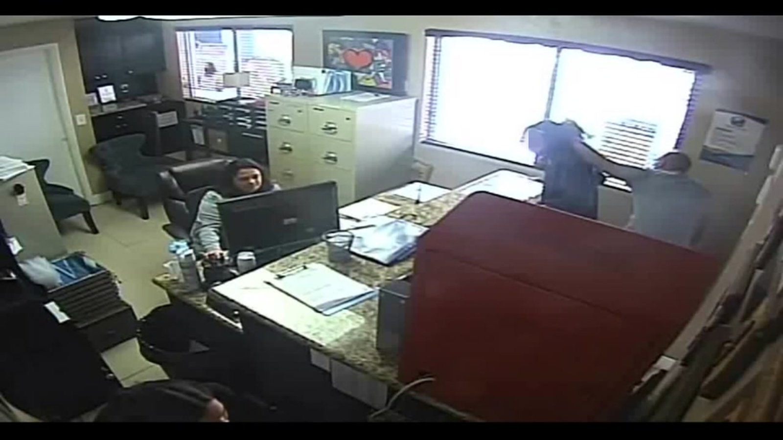 After Rosario arrived at the school's front office, surveillance video shows him slapping his daughter in the face, grabbing her by the hair and striking her twice on the legs with a belt.