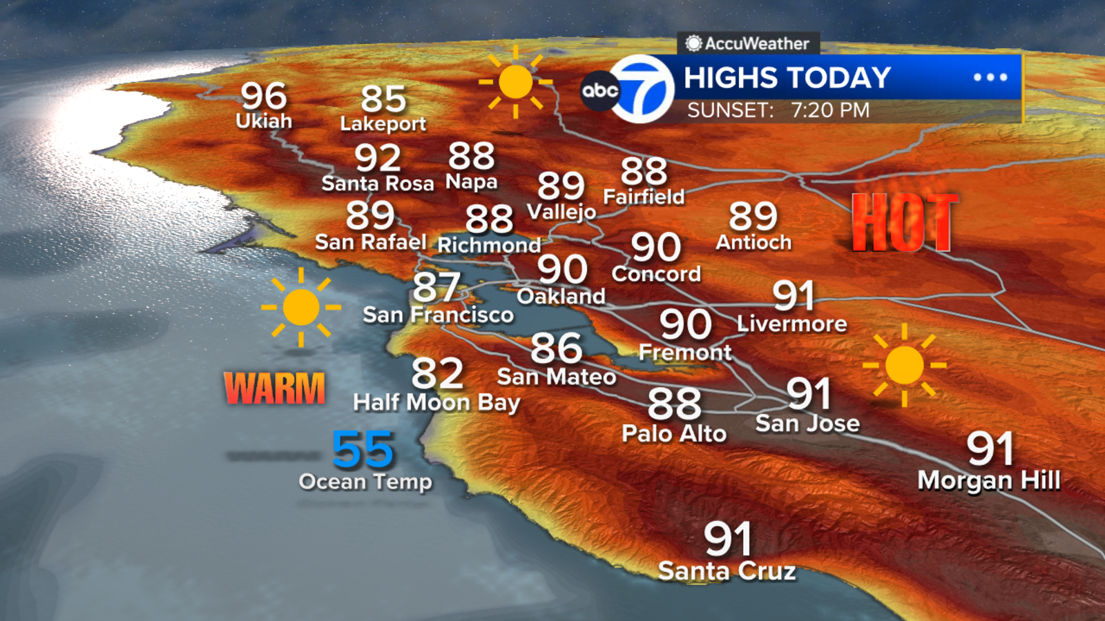 AccuWeather Forecast: Heat wave continues for entire Bay Area; sunny skies highs of 80s to low 90s