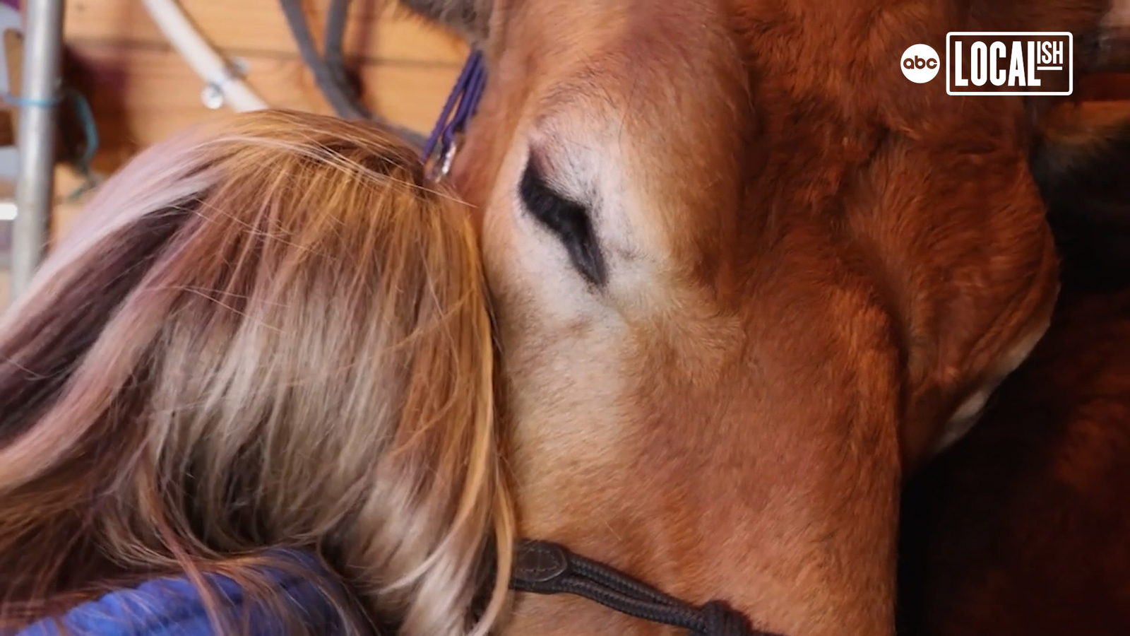 Cuddle sessions start with grooming in the barn before moving to the cuddle stall, where Moo lays down for an hour of blissful cuddling.