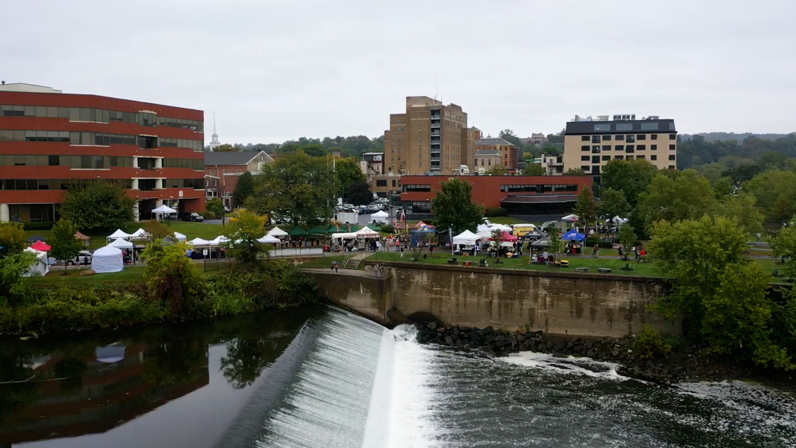 The market started in Easton's Public Square but now takes over the scenic Larry Holmes Drive overlooking the Lehigh and Delaware Rivers that meet at Scott Park in Easton.