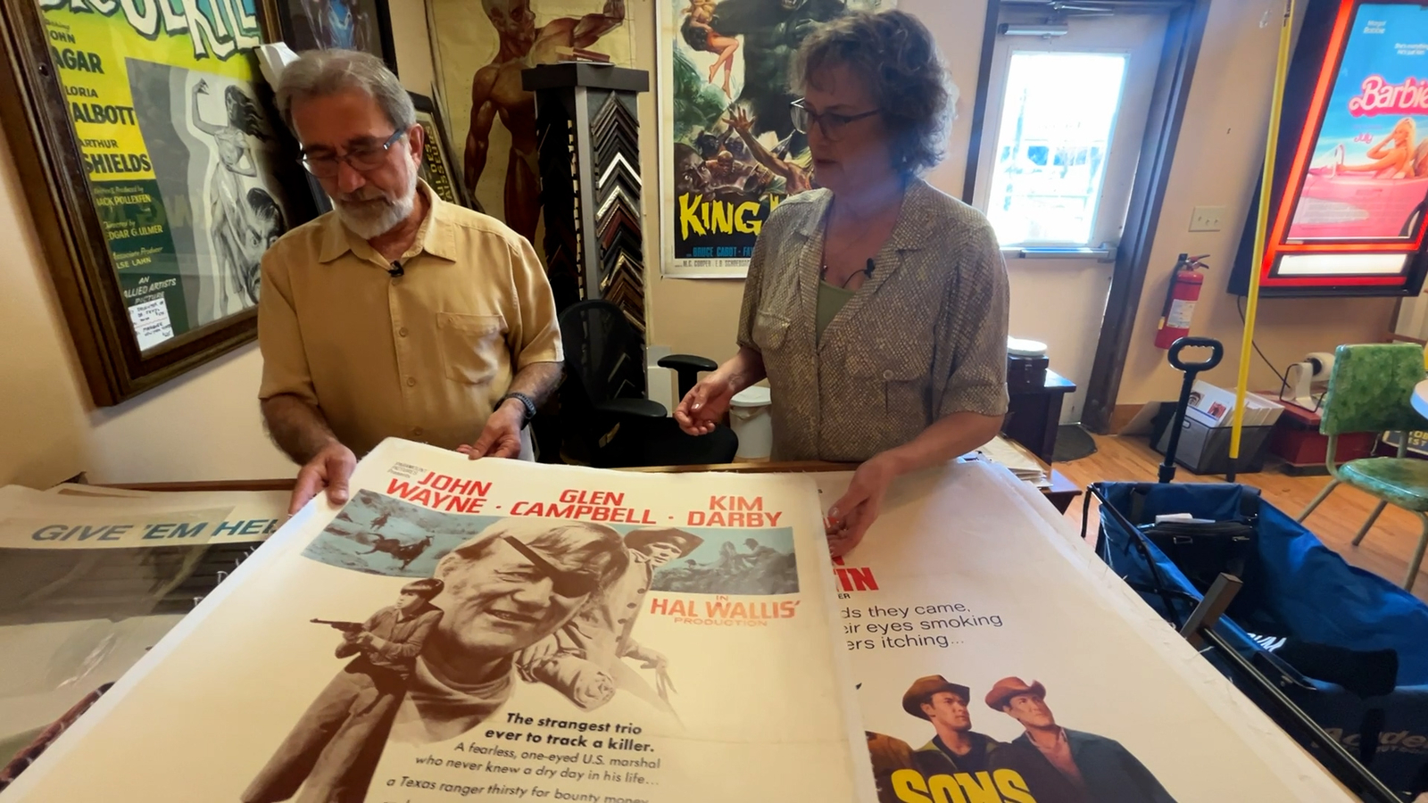 Betsy and Harry got into the poster restoration business fifteen years ago when their son bought a poster for $50 dollars and ended up spending $600 more to get it linen backed.