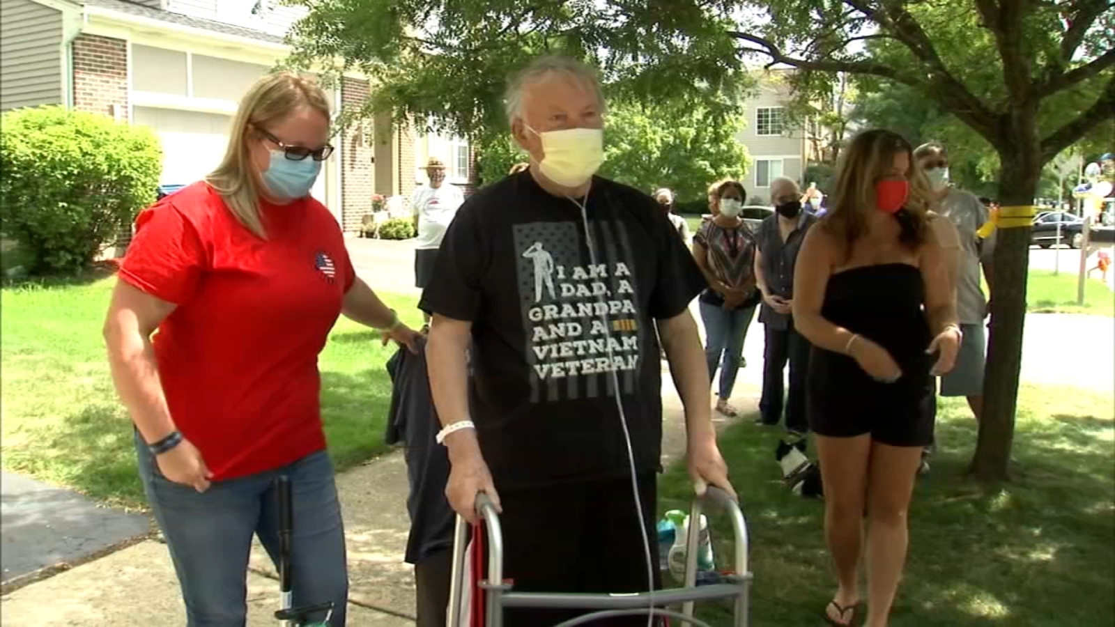 AURORA, Illinois -- Police, Fire, EMS, and veterans were brought together by Donna Morsovillo, founder of Operations Welcome You Home, to lead 75-year-old Vietnam veteran Army Sgt. Matt Thomas from the hospital to his house west of Chicago.