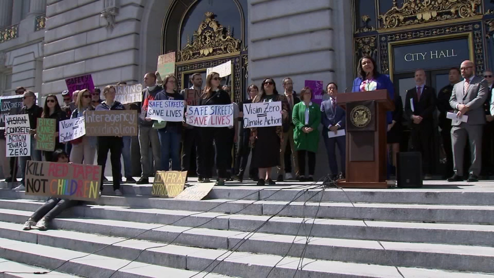 Thursday on the steps of City Hall, Mayor London Breed who was a San Francisco supervisor in 2014 when Vision Zero was pledged, acknowledged the need for enforcement pointing to the tragedy in West Portal this month when a family of four was killed after a driver crashed into a bus shelter.