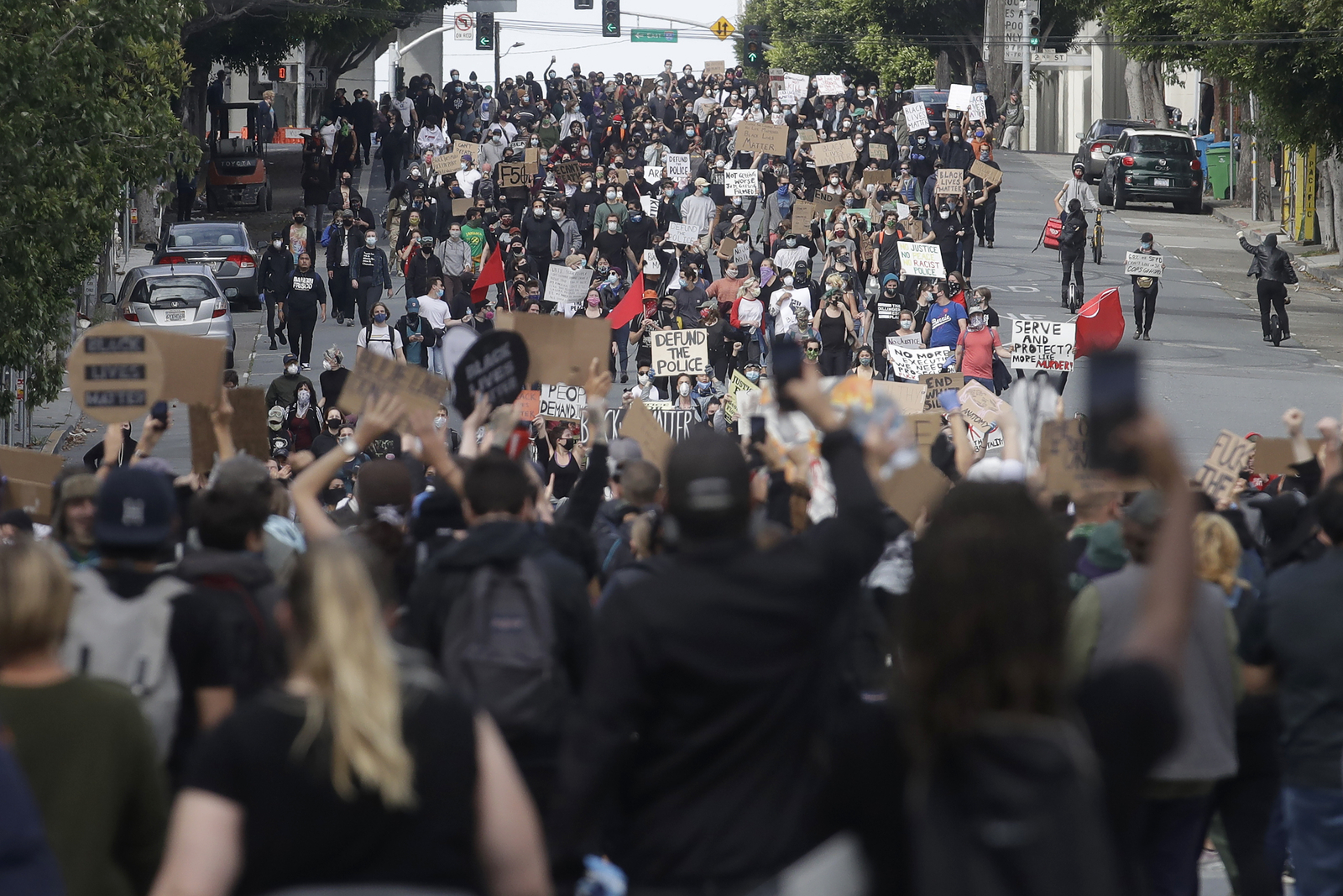 About 1,000 people marched through the streets of San Francisco, carrying signs and chanting "George Floyd," "Black Lives Matter" Sunday afternoon.