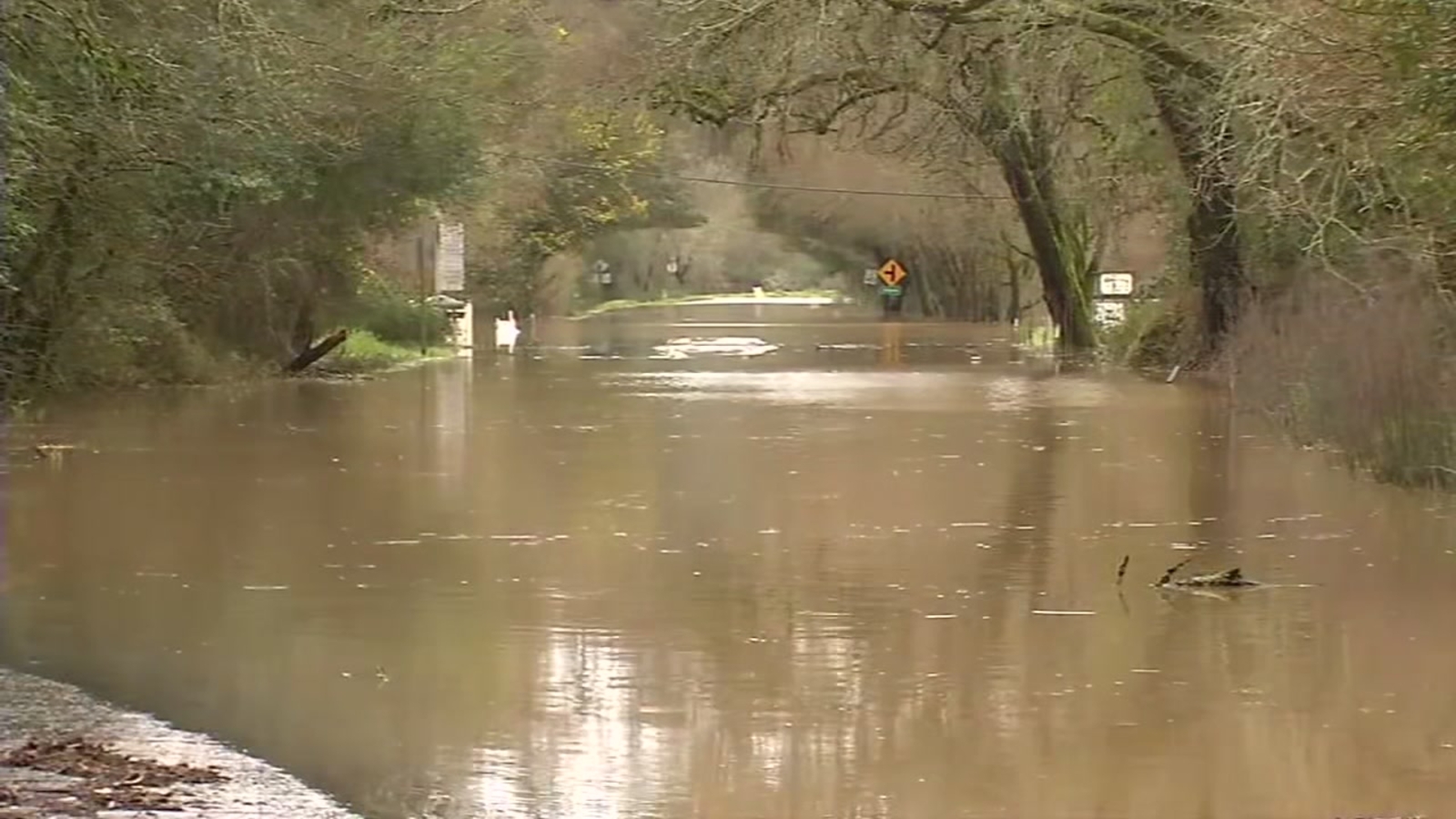 From Sky7, there was widespread flooding is in Guerneville. Water was up to the roofs of some homes and there was flooding in the Safeway parking lot and a few kayakers were seen navigating streets too.