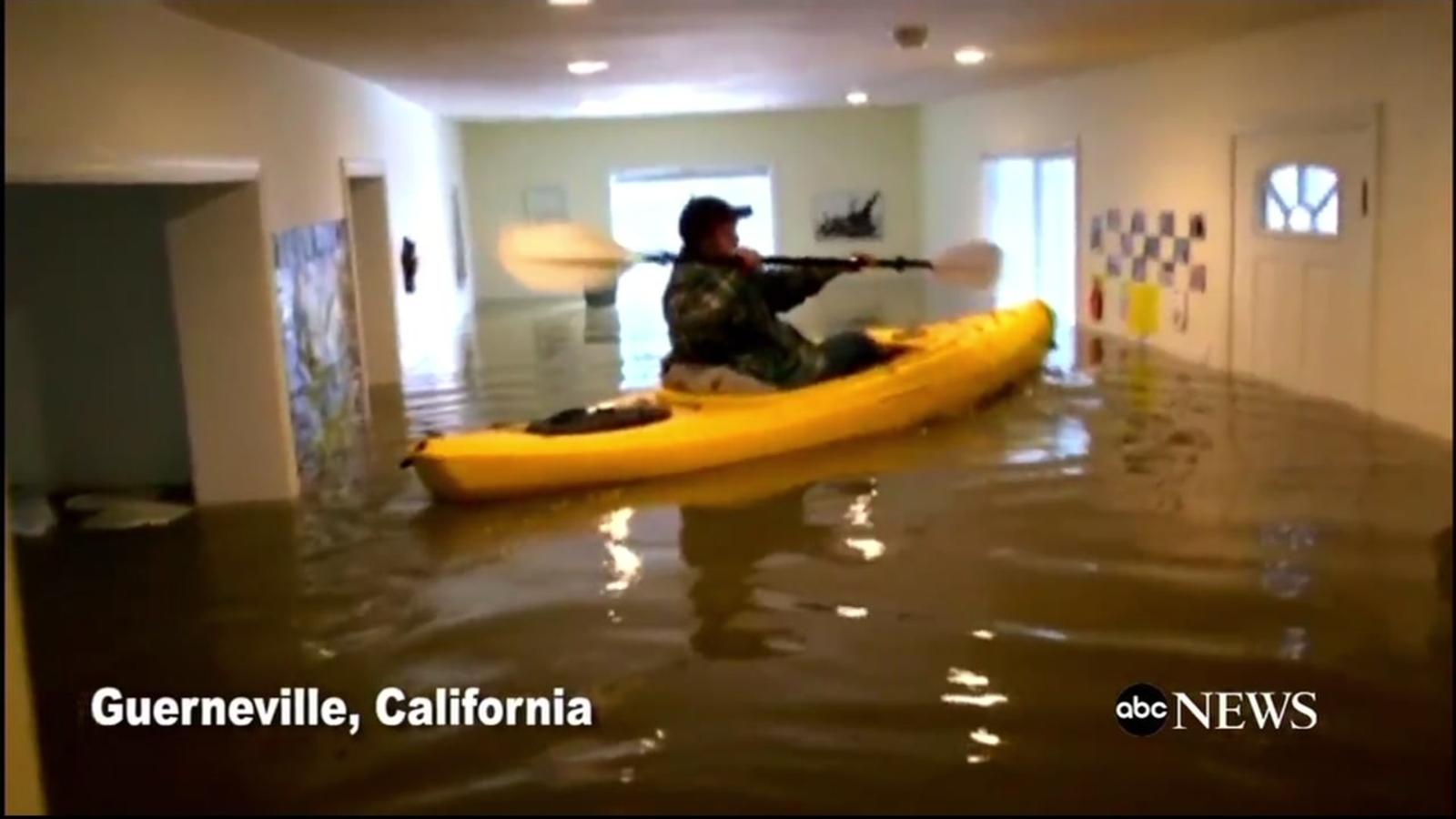 GUERNEVILLE, Calif. (KGO) -- Wild weather has produced some unusual sights. In Guerneville a woman on kayaked through her mother's flooded home.
