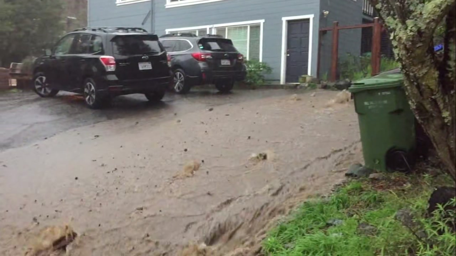 At 8:15 a.m., what had been a gentle rainstorm, turned nasty. Water poured off the mountain and cascaded down Lehman Lane in torrents.