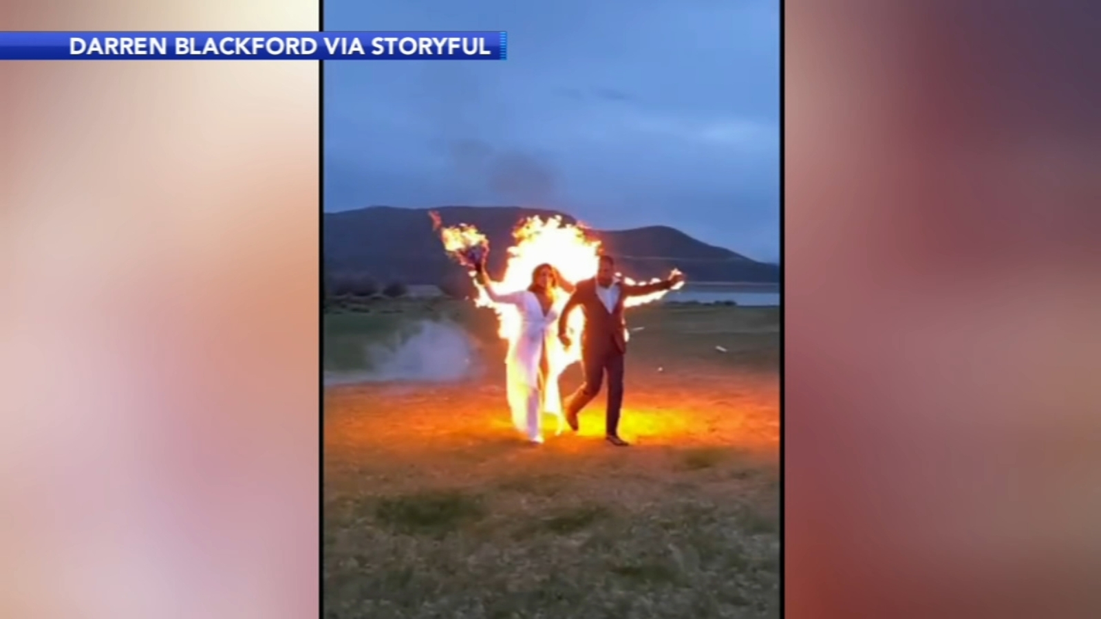Ambyr Mishelle and her new husband, Gabe Jessop, were filmed with both their backs in flames as they were cheered by friends and family after their ceremony on May 7.