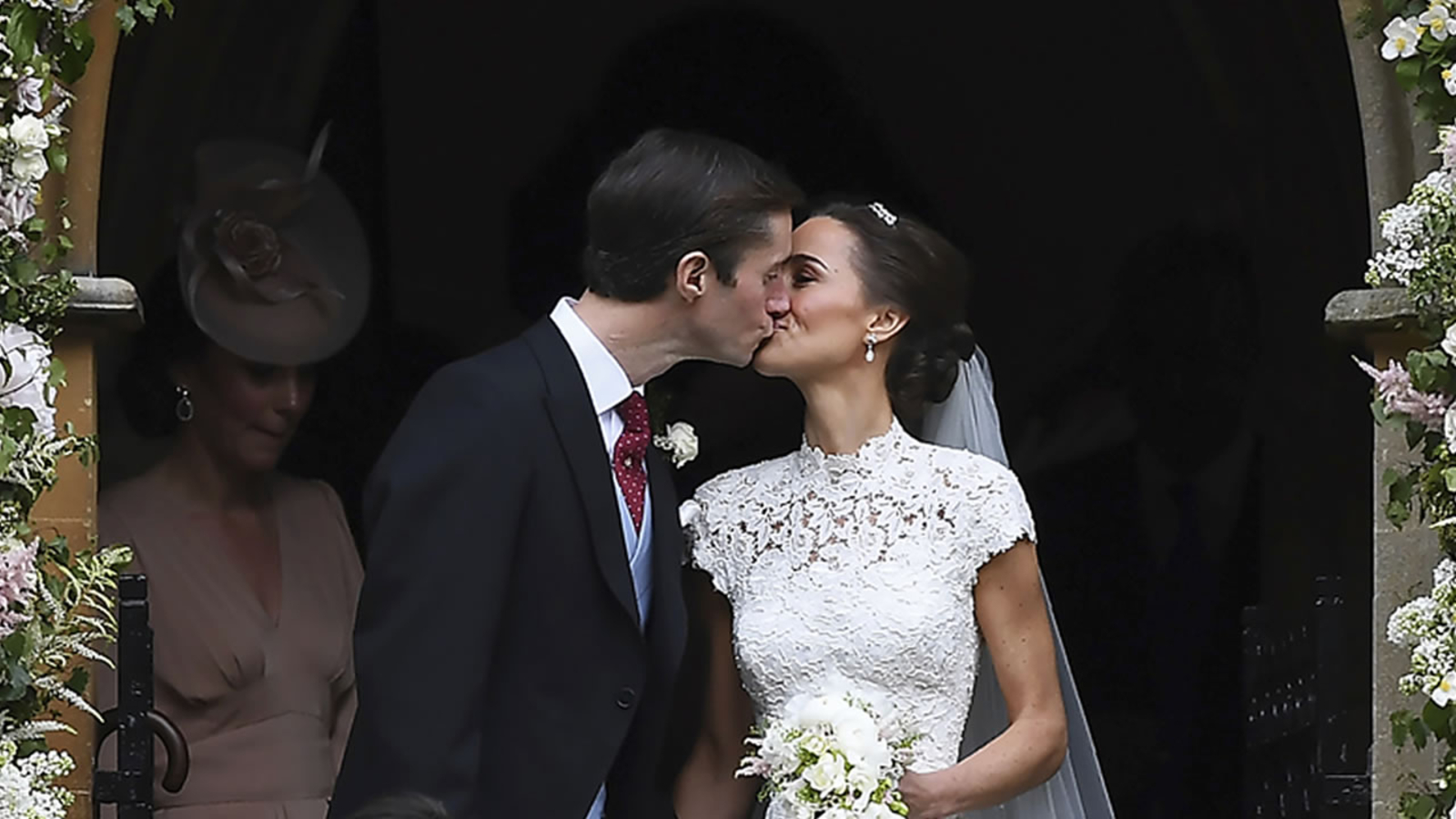 Pippa Middleton, radiant in a custom-made gown, has married a wealthy financier as members of the royal family, including her sister, looked on.