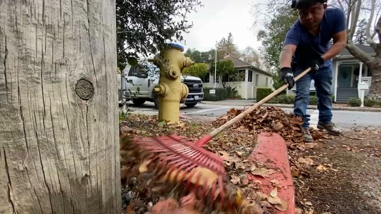 Landscaper Abraham Terraza was working fast on Thursday. He's collecting leaves in and around a storm drain on Kent Avenue in Kentfield in hopes of preventing a flood.