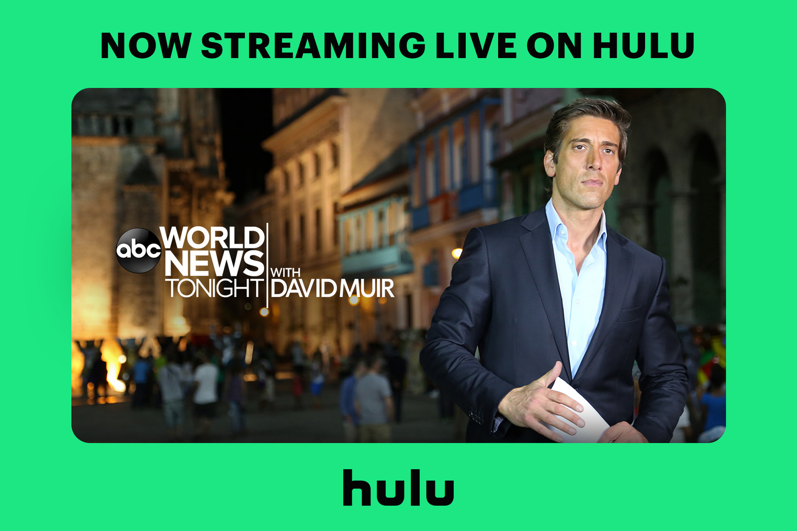 As part of an effort to enhance live news offerings to subscribers during the 2024 election year, Hulu is launching ABC's "World News Tonight with David Muir" on its eight local ABC live news feeds.